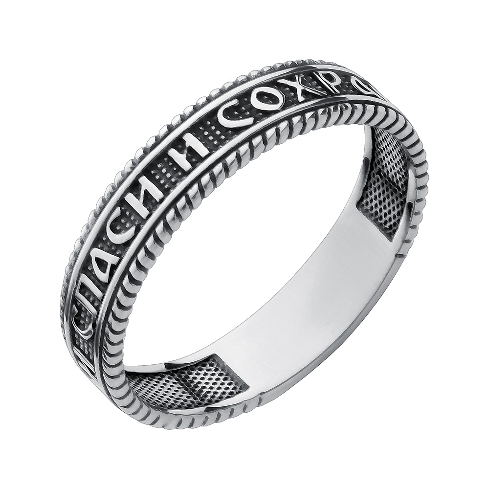 На кольце размещена краткая надпись «Спаси и сохрани». Это самый быстрый и понятный способ обратиться к Богу, сохраняя благоговение перед Ним. Пусть это украшение будет как можно чаще вдохновлять вас на молитву.