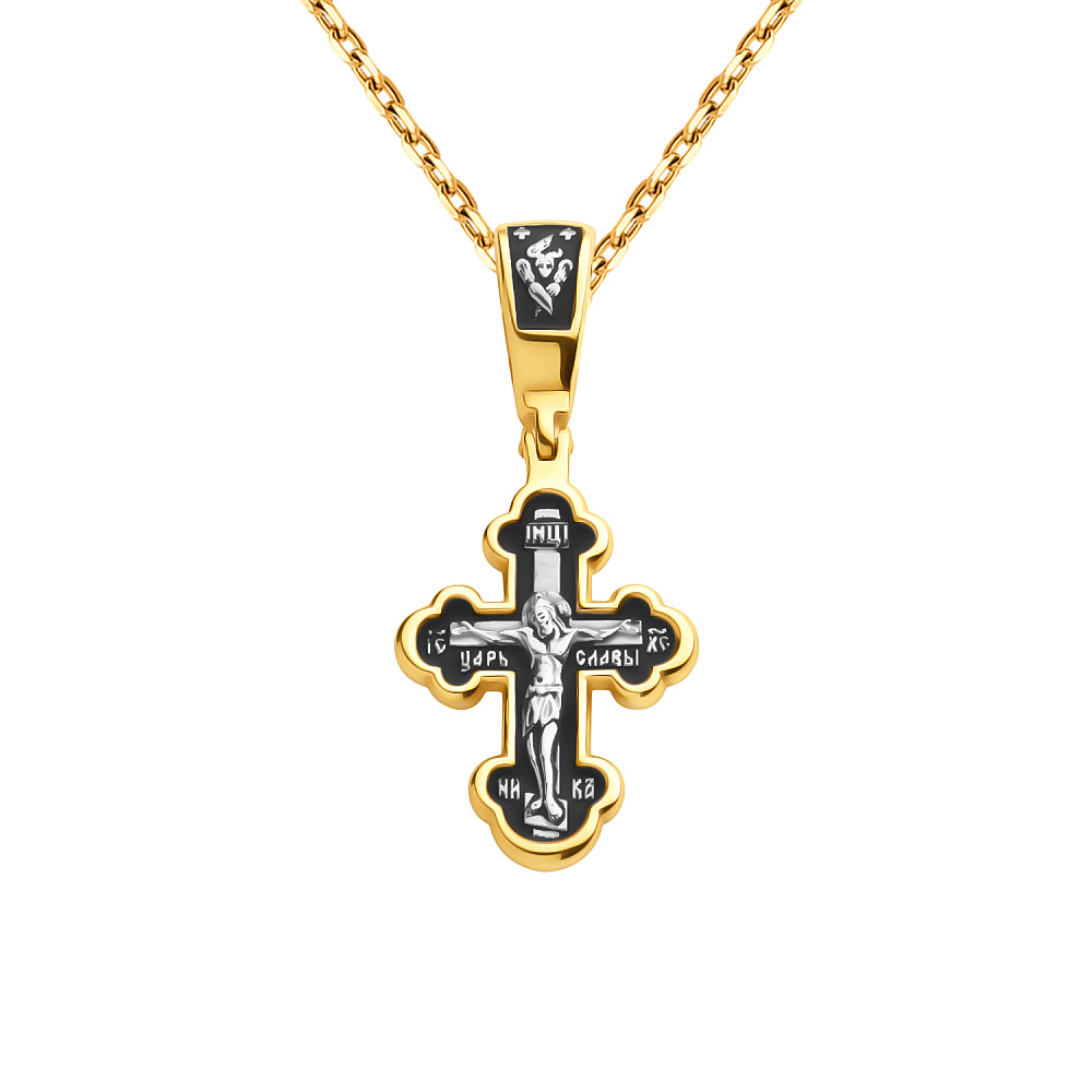 Крест изготовлен из серебра 925 пробы с чернением. Форма такого креста называется трилистник потому, что концы перекладин выполнены в виде полукруглых лепестков клевера. Крест трилистник считается символом Пресвятой Троицы.