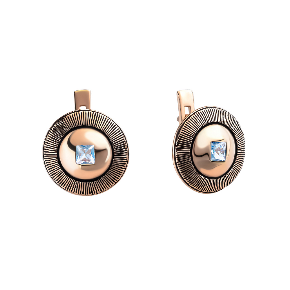 Серьги – это тот аксессуар, который женщина носит каждый день. Поэтому важно выбрать украшения правильно, чтобы они не доставляли неудобств и делали образ еще гармоничнее и обаятельнее. Данное украшение имеет округлую форму, однако не будет смотреться громоздко на ваших ушах. Голубой фианит добавляет загадочности и некого шарма ювелирному изделию. Серьги выполнены из серебра 925 пробы с позолотой и обладают обеззараживающими свойствами, поэтому на этот металл редко бывает аллергия.