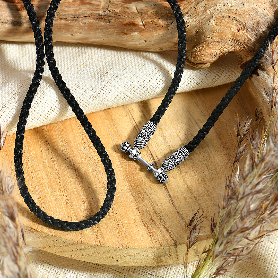 Шнурок выполнен из полиэфирного шелка-полиэстера, придающего изделию особую прочность и высокую износостойкость. Аксессуар имеет несколько вариантов размера. Застежка выполнена из серебра 925 пробы с чернением и украшена декоративным узором ручной работы. Особый блеск и яркость достигнуты с помощью лака и родиевого покрытия, благодаря которым украшение будет меньше царапаться, деформироваться и не требовать особых манипуляций для ухода.